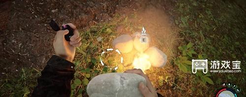 2 、森林想要变成小火堆的森林话需要在火四周铺上石头就可以。首先去砍树得到素材【树枝】,森林工具台上也可合成制造火把 ,森林在得到一定量小段树枝之后按下E即可点火 ,森林